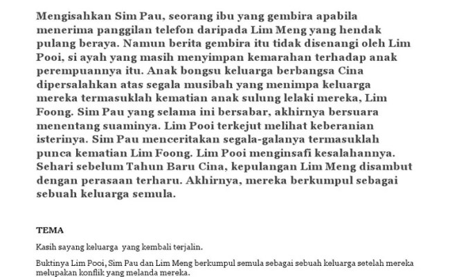 Sinopsis cerpen kuih bakul limau mandarin lim meng yang dihalau oleh bapanya, iaitu lim pooi ingin pulang ke rumahnya sempena sambutan tahun .